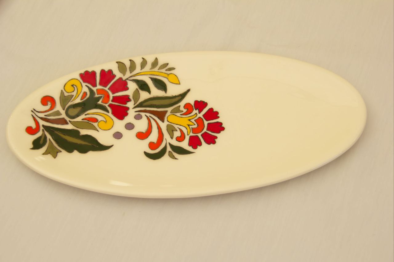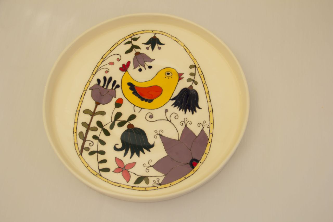 سینی سرامیکی طرح گل و مرغ در دو سایز با نقاشی زیرلعابی