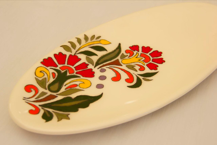 دیس سرامیکی مدل گل عباسی با نقاشی زیر لعابی