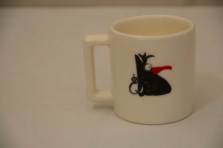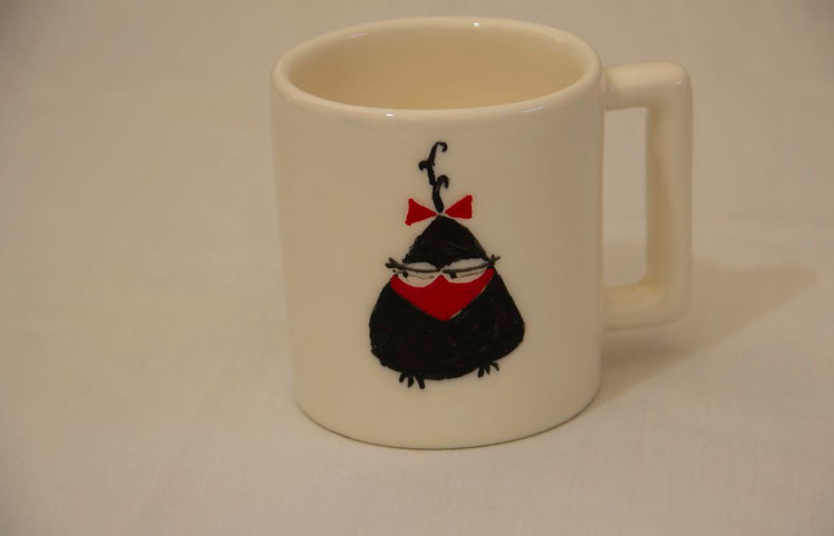 ماگ سرامیکی استوانهای دسته مستطیلی فانتزی طرح کلاغ با لعاب بدون سرب